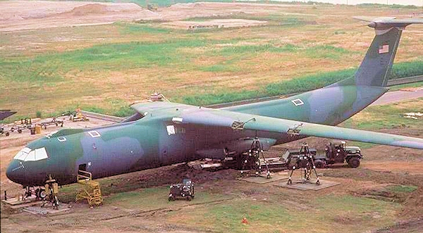 C-141A 67-0029 was accepted by the Air Force on December 19, 1967. The first duty assignment was with the 62nd Military Airlift Wing (MAW) at McChord AFB, Washington. It arrived on station December 27, 1967,1 and would serve with the 62nd MAW until April 15, 1971, when it was reassigned to the 443rd Military Training Wing at Altus AFB, Oklahoma. 67-0029 then served with the 443rd Military Training Wing at Altus AFB, Okla., from April 15, 1971, until June 7, 1974, when the aircraft received a second PCS (Permanent Change of Station) reassignment, this time to the 63rd Military Airlift Wing at Norton AFB, California. Zero-two-nine would serve with the 63rd MAW from June 7, 1974, until December 1992. On February 24, 1978, while assigned to the 63rd MAW at Norton AFB, this aircraft was participating in Exercise Purple Duck, a MAC directed Container Delivery System (CDS) Combat Airdrop Mission (CAM). The flight had departed Norton AFB at 14:30 PST and had proceeded without incident until approximately one minute from Time over Target (TOT) on the Bagdad drop zone at 29 Palms Marine Corps Air Station (MCAS) in the California desert. The aircraft was stabilized at 600 feet above ground level (AGL) and 160 knots on the final run-in heading. The petal doors were open, the ramp down and the “One Minute Checklist” had been completed, when the left petal door buckled on a vertical line just forward of the aft petal door hinge. The collapsing door folded inward and upward with the forward hinge and jackscrew failing almost simultaneously. The trailing corner of the left door struck the right petal door about two feet from the end inflicting a 30-inch gash. The left door then fell from the aircraft in two separate pieces, landing about three miles short of the drop zone. As the door separated the Loadmaster called “no drop” and the CDS malfunction checklist was completed. The right petal door and ramp were closed and the mission aborted. The sky was clear with no turbulence, no in-flight controllability problems were experienced during the flight and an uneventful approach and landing were accomplished back at Norton AFB. The cause was ruled delamination and materiel failure of the petal door. The damaged door and door components were shipped back . . .