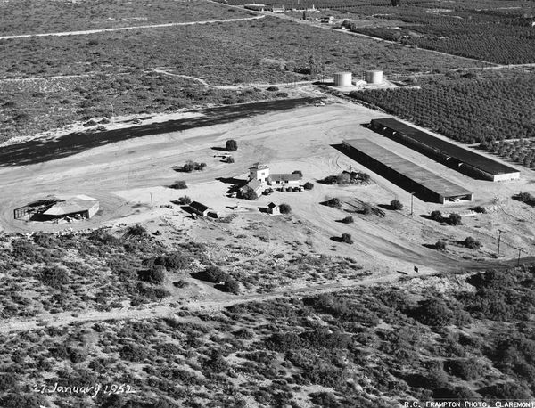 Cable Airport, 70 Years of Service In the Beginning In the beginning, as WWII marched to its conclusion, Dewey Cable set about making his dream of having his own airport a reality. He considered several different locations in southern California in the area now known as the Inland Empire area. He finally settled on 80 acres of rocks and shrubs north of Foothill Boulevard, between Upland and Claremont. Dewey talked the owner into selling it to him for $8,500, which was much less than the original asking price. It took all of Dewey and Maude’s savings to make the purchase, as the banks would not loan them money to develop the airport because the property, being watershed, was subject to flooding. Being the resourceful person he was, Dewey turned around and sold 12 acres to the Holiday Rock Co. for $8,500, which gave him the money he needed to start construction. Another 40 acres was purchased in 1948 and the final 20 acres in 1956. When it came time to start runway construction, Dewey was again frustrated by uncooperative banks and unwilling contractors. Contractors, looking at the rugged terrain with deep gullies, huge boulders, and rocks of all sizes, said it would cost a fortune to build the runways and quoted accordingly. That didn’t stop Dewey. He went ahead and built them himself. He rented two bulldozers and a carryall, and bought an old pull grader. With the help of his wife, two children, and some hired help he began construction on the first runway in March 1945. Thirty days later (for a fraction of the cost one contractor wanted) the first 1,200 feet of runway was completed. Dewey had chosen to fill one of the eroded north-south ravines first, because it was the easiest to do. This became runway 1-19. Of course, it did have a steep 3.5% gradient, and the prevailing winds were across the runway instead of parallel. But that wasn’t a problem for an experienced pilot like Dewey. Besides, the important thing was that he could use it now, while the other longer runway was being built! Dewey used the dozer to clear the boulders and the grader to level the runways. Maude Cable drove a truck and hauled equipment. Roger, his son, who was seven, marked outlines for the runway, which was no easy task because he was not tall enough to be seen from one point to another. Many times he had to stand on the top of the old Model T truck. Millie, Dewey’s daughter, was 13 and kept track of topsoil being delivered from the nearby rock quarry at 50 cents a truckload. The First Landing It was a short flight to the strip he and his family had carved out of the San Antonio Wash. It looked small from the air, but Dewey saw the future and it was huge. Everything appeared fine as he came in on final. But the runway had just been watered and he didn’t see a large rock that had been upended by the water truck. He flared expertly and had just touched down when one wheel hit the rock and was sheared off. The plane kept going, finally skidding to a stop. Upset but undaunted, he moved the plane out of the way and continued construction of the runway. There was no stopping now. The family reserves had been spent and the only way to survive was to get the airport operational. Dewey, Maude and the children worked from sun-up to sun-down seven days a week to finish the runway. It wasn’t long before it was 1,500 feet long and improved to a point where other planes started coming in. One of the first to arrive was Everett Bronson, who became their first tenant. He flew his Aeronca Chief in shortly after Dewey made his first landing and stayed. Through the years he has changed planes, but not airports. Bronson was Cable’s first tenant and continued to base his planes there throughout his flying career. At the age of 81, in 1996, he was still actively flying his Piper Comanche 260. Maude made sure everyone was greeted with a smile. No one could turn down the Cable hospitality and welcome . . . |