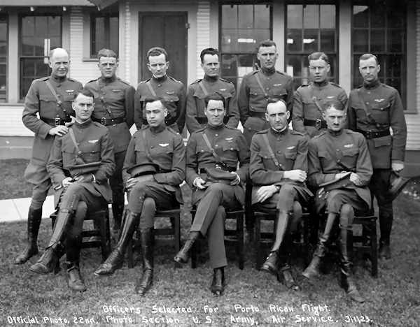 From March 3 to April 3, 1923, 12 Army Air Service pilots in six de Havilland DH-4B aircraft, under the command of Capt. Thomas G. Lanphier, successfully completed what was known as the 1923 Puerto Rican Flight. In addition to testing endurance, it was essentially a photo reconnaissance and goodwill flight of over 5,000 miles, much of it over the open water of the Caribbean Sea. The flight originated at Brooks Field, San Antonio, Tex. From there the aviators flew six DH-4s to San Juan, Puerto Rico, via Alabama, Florida, Cuba, Haiti, and the Dominican Republic. On the return flight, they reversed course to Jacksonville, Fla., then through Georgia, North Carolina, and Langley Field, Va., before terminating the flight in Washington, D.C. The two-seater DH-4B aircraft, powered by a 400-hp water-cooled, 12-cylinder Liberty engine, was modified to carry 135 gallons of fuel instead of the standard 80 gallons. The two seats were normally for a pilot in the front and his mechanic in the rear, who maintained the aircraft. In this case each mechanic was replaced by another pilot. So, on this mission the two pilots had to do their own aircraft maintenance. In flight the two pilots could trade off flying the airplane while the other took photographs, slept, or attended to other matters that needed attention. While on the ground both pilots, with the help of U. S. Marines or the U. S. Navy sailors at various stops, would service the aircraft by refueling, changing the oil if needed, servicing the controls, checking the wheels, checking the strut wires, and otherwise attending to anything that needed fixing. At each stop in the West Indies they were met by local dignitaries and wined and dined at local high-end facilities. Eleven days after the flight ended in Washington D. C., Secretary of War, John W. Weeks sent each flyer of the 1923 Puerto Rican flight a letter of commendation: SUBJECT: Commendation April 14, 1923 It gives me great pleasure to commend you for your excellent performance of duty as a member of the recent successful flight of six army airplanes from the United States to San Juan, Porto Rico and return. The establishment of airways assists the progress of aeronautics even as good highways accelerated the growth of the automotive industry and you have the distinction of being one of the . . . |