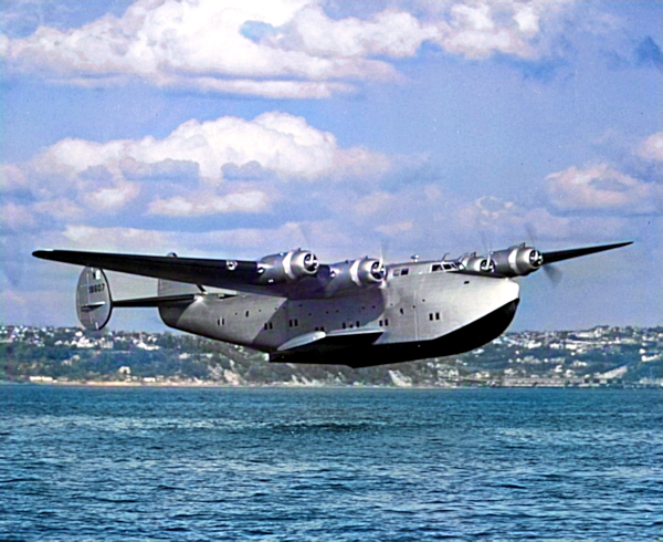 A colorized photo of Boeing 314A, NX18607, sister ship to AIA Bermuda Sky Queen, NC18612, during a pre-delivery flight. (Boeing Aircraft photo from AAHS archives)