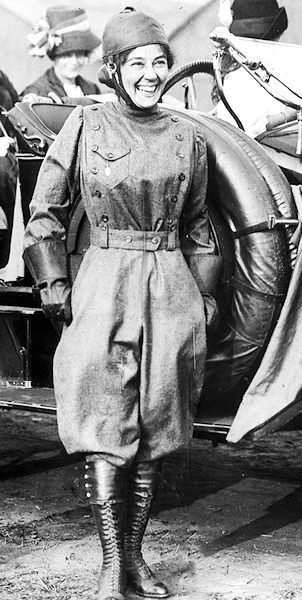 and a sign of bravado for a woman to become a pilot.” [1] Following the Wright brothers’ successful 1903 launch of an aircraft, aviation was endowed with seemingly endless possibilities. Enthusiasts began constructing airplanes and acquiring powerplants. Male pilots donned their flying suits with bravado, amazing the public in fragile linen and wood craft. They were awarded hero status; women swooned whenever they chanced to be in their presence. But what about the women – those who defied stereotypes and earned the right to operate the controls of an airplane? The underlying problem the women faced was that aviation provided no role for them in either the cockpit or in any other related capacity. Women as airplane passengers was inconceivable. The passing of time, however, would eventually afford women acceptance in the world of aviation, albeit limited. In the interim, it would be quite an adventure as they explored potential options for appropriate flying attire that was morally acceptable. Pants were out of the question although women working in factories or on ranches in the late 1800s were often seen wearing them. According to Sherwood Harris, fashion restrictions made it difficult for women pilots to find suitable clothing. “For centuries women’s fashions seemingly had been designed to prevent them from stepping out of their limited lives and into more active competition with their men. At the turn of the century, skirts dragged the floor, corsets contorted the female figure into grotesque S-curves and exaggerated hourglass shapes, and frills and ruffles weighted everything down and lent the costumes of the period a distinctly over-decorated look. Only a few months before Harriet Quimby and Matilde Moisant learned to fly, a great breakthrough occurred. Skirts were raised enough to show off a well-turned ankle. But this radical – some thought it scandalous – development was far from the ideal costume for making a flight in the open cockpit planes of the time.”[2] As women began participating in sports on a regular basis in the late 1800s, the need for practical clothing became apparent. Regulation clothing for the ladies competing at Wimbledon required long skirts and corsets. It’s no surprise that many fainted during a match. Straddling a bicycle in a gown measuring five yards at the hemline proved a daunting task at best. The first attempt to make ‘adjustments’ to women’s active wear occurred when parachuting became popular. The jumper, male or female was required to roll over on their back and thrust their legs upward to avoid a spinal injury. To maintain a semblance of propriety, British Parachute Queen Dolly Shepherd traded her skirt for a navy-blue knickerbocker suit with gold trim, long front-laced boots, and a high-peaked cap. The suit added an element of flair to her performance and, at the same time, preserved her dignity.[3] Mrs. Hart O. Berg, first American woman to fly in an airplane, secured her full skirt by having a rope wrapped around its bottom that allowed her to thoroughly enjoy her 1908 flight at Le Mans, France. While testing her home-built aircraft in 1910, Bessica Raiche, first American woman to make an intentional flight, quickly realized that wearing a skirt was a big mistake. The wind lifted it and hampered the safe control of the . . . |
