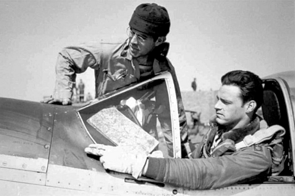 The Story of Major Pierce McKennon "This will be a rough mission," 1st Lt. Pierce W. McKennon of Fort Smith, Ark., mused to himself as he pulled his six foot frame into the snug little cockpit of the P-51 Mustang fighter plane. Schweinfurt had been a veritable hell of flak and a nest of aggressive, highly-capable German fighter pilots for many months. On October 14, 1943, only six months before, a fleet of 228 American B-17 and B-24 bombers had lost 60 planes while attempting to knock out the ball bearing plants located in that central German stronghold.[1] |