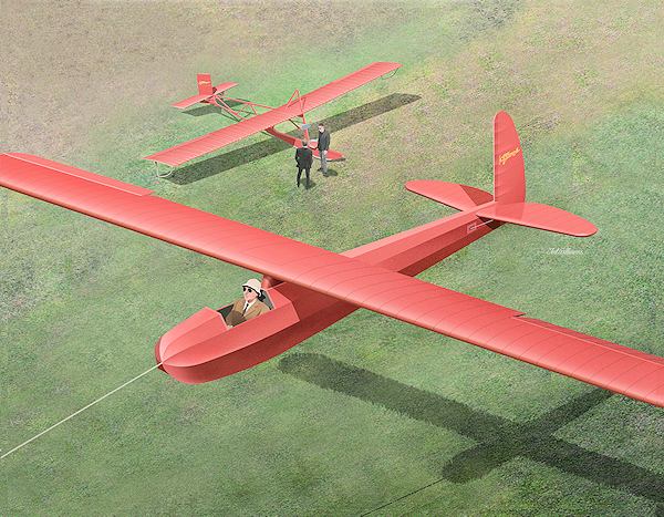Early in 1930 aircraft manufacturers found themselves struggling to keep their doors open. Lindbergh’s transatlantic flight of 1927 had spurred an economic boom that had evaporated overnight on October 29, 1929, with the stock market crash that ushered in the Great Depression. Planes that had been selling for more than $15,000, were being offered for under $10,000, barely covering the cost of the engine. Companies like Stearman, Waco, Stinson, American Eagle, Aeronca and others were having difficulty making payroll and paying their suppliers. Striving to survive was the order of the day. Clyde Cessna and his son Eldon understood that to sell planes you needed to have pilots as customers, but in the current economy, few could afford the expense associated with obtaining a pilot’s license. Cash was just too tight. Some companies, like Aeronca, investigated creating low-cost, low-powered two-seat designs that they hoped could provide a low entry point into aviation while serving as a basic trainer. Eldon Cessna saw the opportunity differently. Looking at pilot training in Europe, he saw that the primary entry point for flying was gliding - low costs, fun and exciting; key elements for attracting individuals into aviation. Eldon quickly created a primary glider design based on similar German designs of that period. The Cessna Glider, CG-1, that made its first flight (unmanned) on December 28, 1929. The wood and fabric plane had a 35-foot wingspan and an empty weight of 120 pounds. Flying speeds were in the 20-25 mph range with landing speed of around 15 mph. The plane could be launched by bungee cord, auto tow or air tow. It was quickly refined for production as the CG-2. Introduced at the bargain basement price of $400 for an assembled ship, or only $100 if you were willing to assemble it yourself from a kit of parts. Cessna launched a strong marketing campaign to promote their glider. This included advertisements with the tag line "Glider Pilots will be future transport pilots." They also got quite a bit of press coverage by having well known pilots like George Goebel, Frank Hawks and Charles Lindbergh try out their glider. Other personalities known to have flown the glider included Gilbert G. Budwig, Director of Air Regulations for . . . |