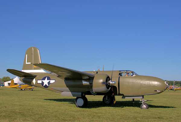 The only airworthy Douglas A-20G, N747HS, taxiing for departure at AirVenture 2017. This type suffered the greatest losses in the WWII "Black Sunday" mission. (Photo by Hayden Hamilton)